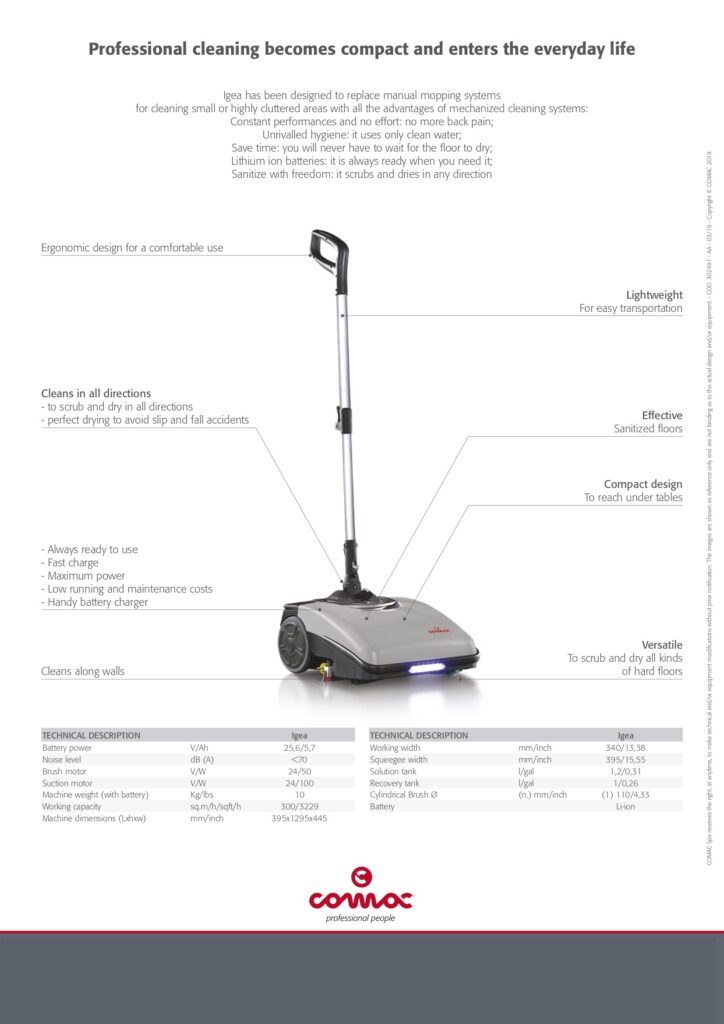 Introducing the Comac Igea 34cm Battery Scrubber - the ultimate solution for efficient and effective cleaning! ✨