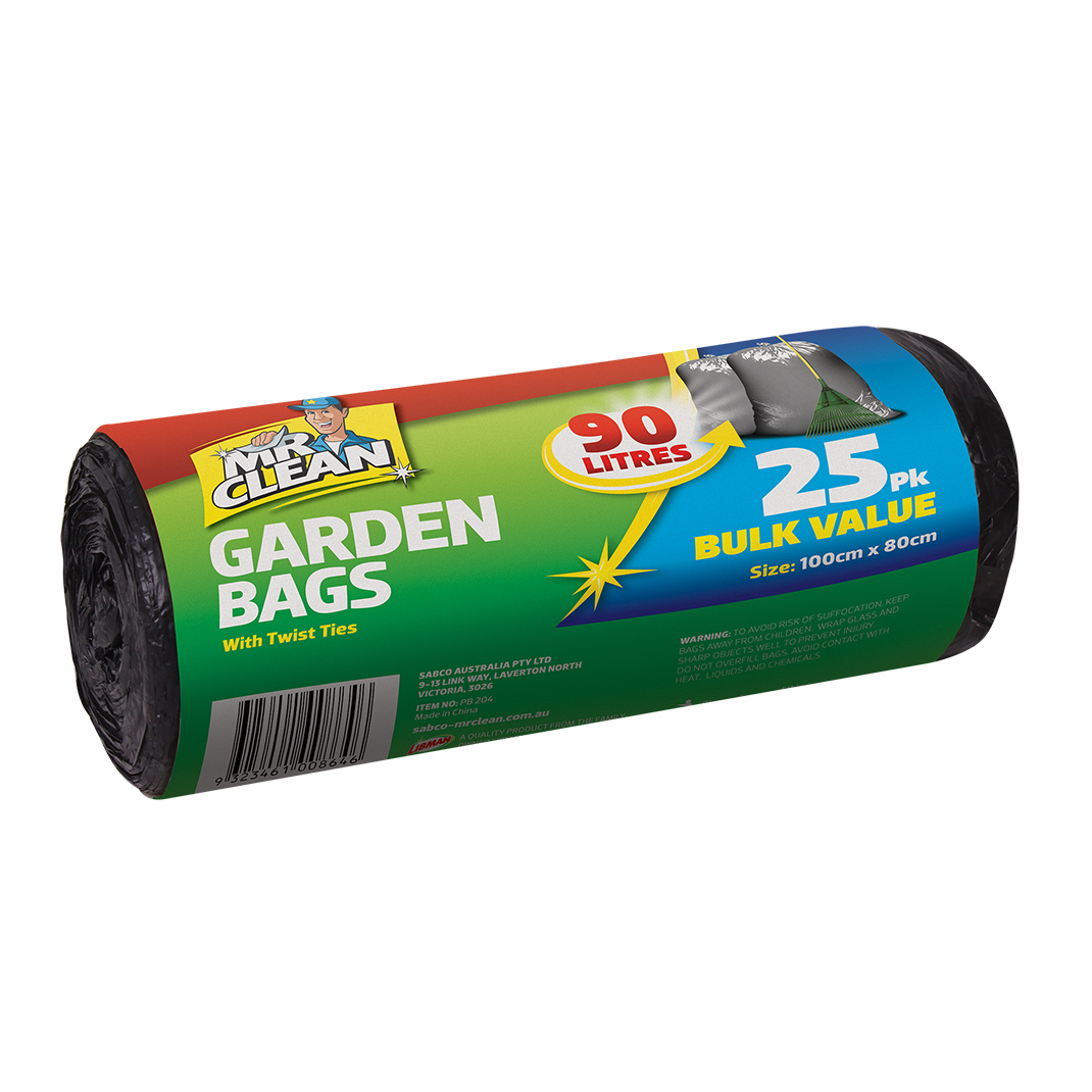 The perfect solution for your rubbish disposal, Mr Clean Garden Bags with twist ties keep your yard clean and tidy. Designed with durability and convenience in mind, these bin bags are perfect for efficiently managing garden waste. With a generous capacity of 90 litres per bag, they provide ample room for leaves, grass clippings, branches, and more, ensuring you can tackle even the largest of yard clean-up tasks with ease. They are strong enough to carry all of your garden waste. These bags are easy to carry and convenient to use.