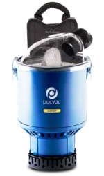A Pacvac backpack vacuum provides the user with freedom and strong suction power to deliver high productivity and a deep clean for large scale commercial environments.