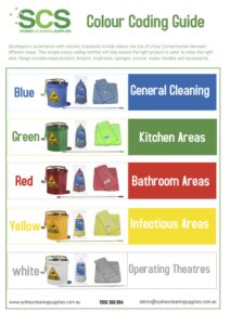 - Inexpensive – colour-coded commercial cleaning products cost about the same as “standard” cleaning products without colours