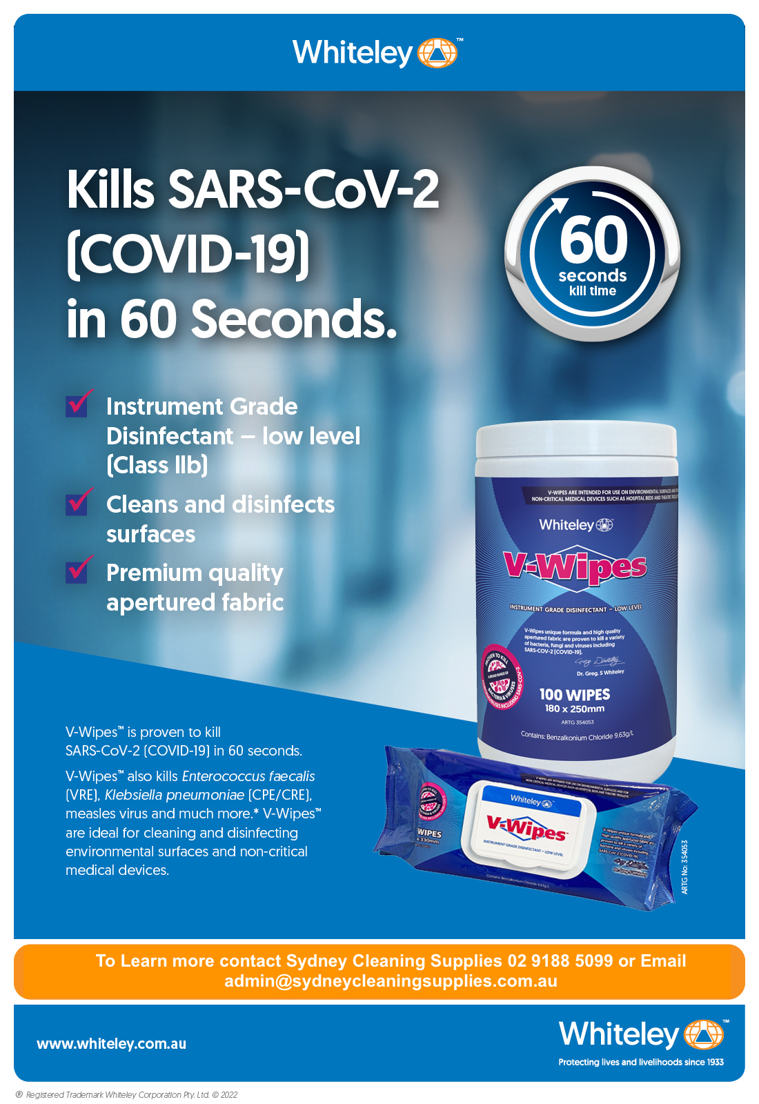 • Hospital Grade Wipes